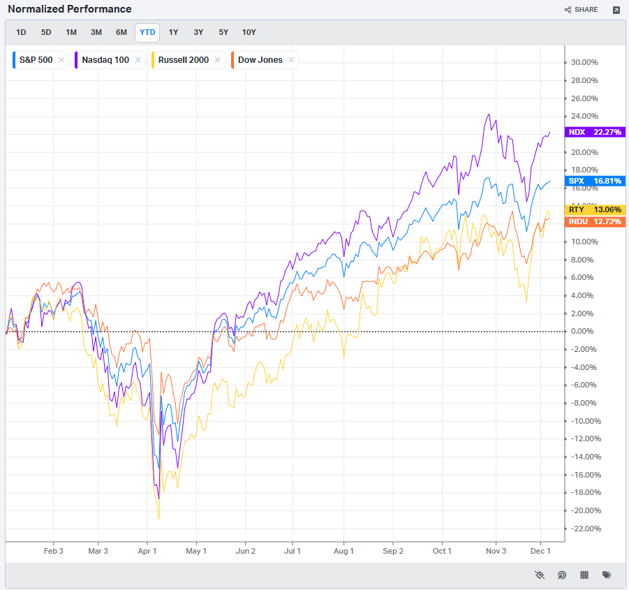 Stock indexes came into December with the wind at their backs. By Friday’s close, the S&P 500 had climbed to a 5-week high, the Nasdaq 100 marked a 1-month high, and the Dow Jones Industrial Average pushed to a 3-week high. The broader Nasdaq Composite advanced 0.91% on the week, the small-cap Russell 2000 gained 0.84%, and the S&P 500 added a modest but meaningful gain of its own. Both the cap-weighted and equal-weight S&P 500 finished the week slightly higher, and Friday’s advance made it eight wins in the last nine sessions for the S&P 500.