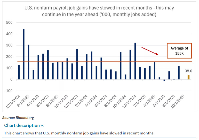 For the Fed, the combination of core PCE running at 2.8% year over year and survey-based expectations drifting lower is almost ideal. It suggests that restrictive policy has done its job without forcing the economy into a deep slowdown. With growth likely to soften in the fourth quarter as the effects of the shutdown show up in the data, and with labor indicators cooling but not collapsing, it would be surprising if the Fed chose to risk the labor market falling substantially further from here by keeping policy as tight as it has been.