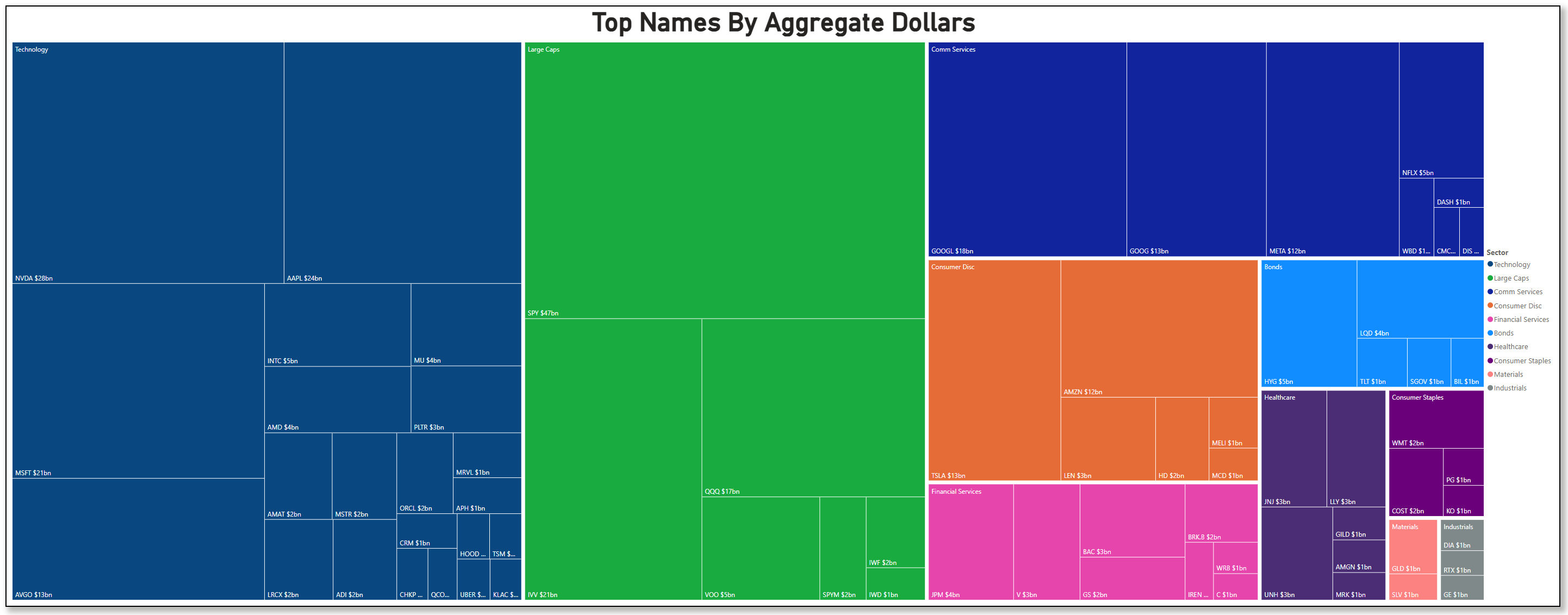 This is the growth engine and the thematic heart of the current regime. It reflects both sustained accumulation in the TRV list and heavy consensus engagement across software, infra, and semis.
