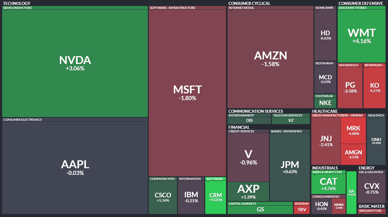 Software had its own leadership. Salesforce (CRM) led the Dow Jones Industrials, tacking on more than 5% Friday on top of a 3% gain the day before after raising its 2026 adjusted EPS forecast. In communication services, Meta Platforms (META) gained roughly 4% on the week on reports that it is substantially cutting spending on metaverse development. That shift away from a capital-intensive, low-visibility project helps the near-term margin story, even if it complicates the longer-term marketing narrative.